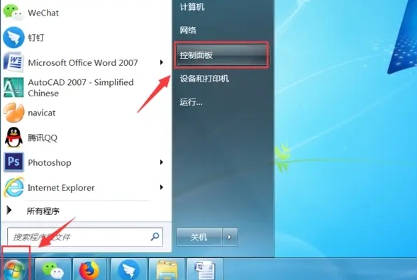 2、在電腦桌面左下角單擊“開始”選擇“控制面板”。