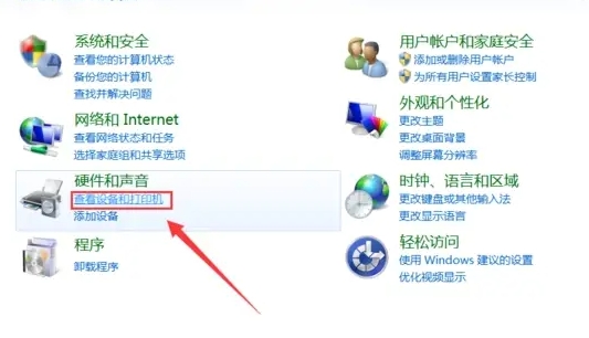 3、在控制面板中選擇“查看設(shè)備和打印機(jī)”。