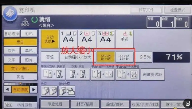根據(jù)縮放比例選擇。A3縮小為A4 , A4放大為A3