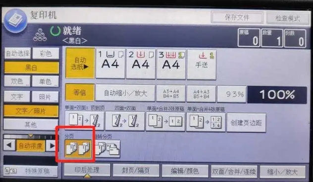 當一份多頁文件需要復印多份,可使用分頁功能自動分頁