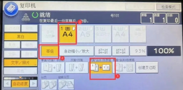 一、點(diǎn)擊復(fù)印界面,按順序1→2→3依次點(diǎn)擊