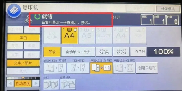 再次點(diǎn)擊開始按鍵,機(jī)器即可復(fù)印正反面在同一張紙。